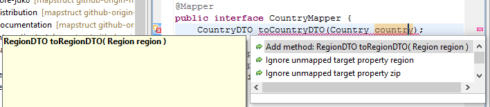 targetandsourceproperties in@Mappingannotation for bean mappings - Completion of